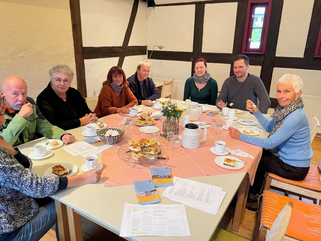 Zur klassischen Kaffeezeit waren am 26. Oktober ab 15:00 Uhr die Türen geöffnet. Der Zuspruch war trotz des Wetters gut. Bei leckerem Kuchen und Kaffee, Tee oder Saft wurde im gemeinsamen Gespräch ein erstes Kennenlernen ermöglicht und Informationen über Gemeinde, Ortsteile, Vereine, Freizeitmöglichkeiten, Verkehrsanbindungen und vieles mehr ausgetauscht. Für die Besucherinnen und Besucher des Willkommenstisches lag eine fünfseitige Liste mit den Angeboten in den acht Ortsteilen, die die Initiatorinnen aufgrund der verfügbaren Informationen erstellt hatten, und Informationsmaterial des Kulturfördervereins bereit. Das Informationsmaterial wurde gern mitgenommen wurde.